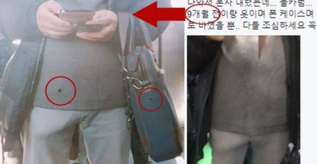 이 사진을 제보한 이용자는 "친구 앞에 어떤 남자가 서더니 휴대폰이랑 보조 배터리를 만지작거렸다"며 "친구를 찍는 것 같았다"고 전했다.