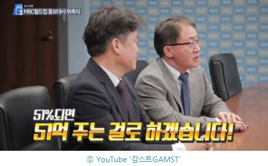 이에 감스트는 "돈도 중요하지만 MBC는 돈을 좇는 방송국이 아니지 않나"라며 "(경제사정이 안 좋은 상황에서) 어렵게 축구하는 아이들을 위해 MBC가 기부 사업을 더 해줬으면 좋겠다"고 했다.