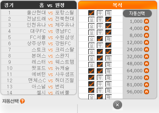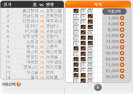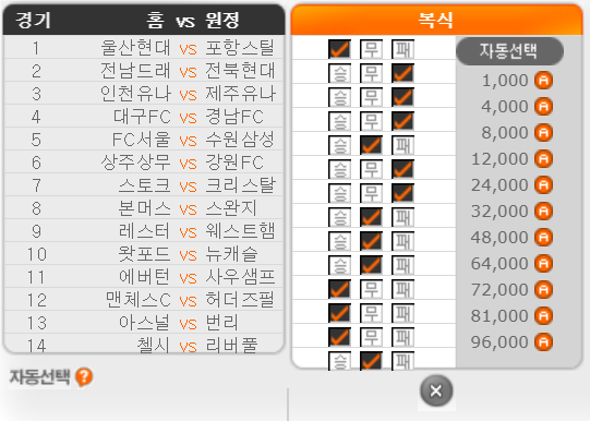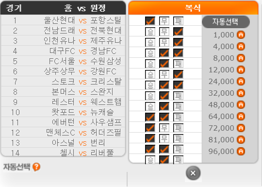 No 5. FC서울 9위 수원 블루윙즈 2위 – 30.26%/ 31.52%/ 38.21% (무/패)
