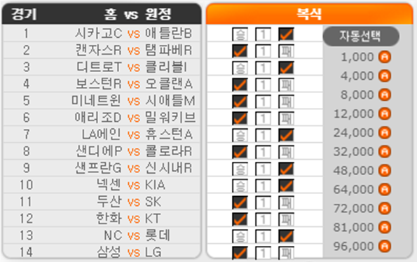 경기번호/ 팀[선발투수] / (추천픽/고려사항)