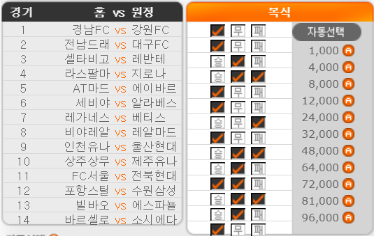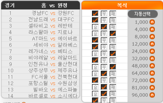 No 2. 전남 드래곤스 10위 vs 대구FC 12위 – 42.96%/ 28.53%/ 28.50% (승/무)
