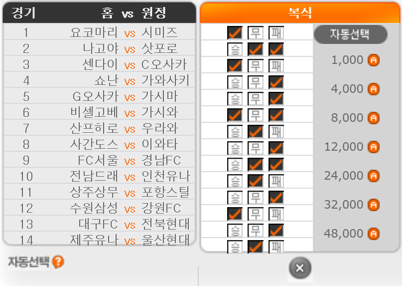 No 14. 제주 유나이티드 vs 울산 현대 – (무), 결과 1-1 적중