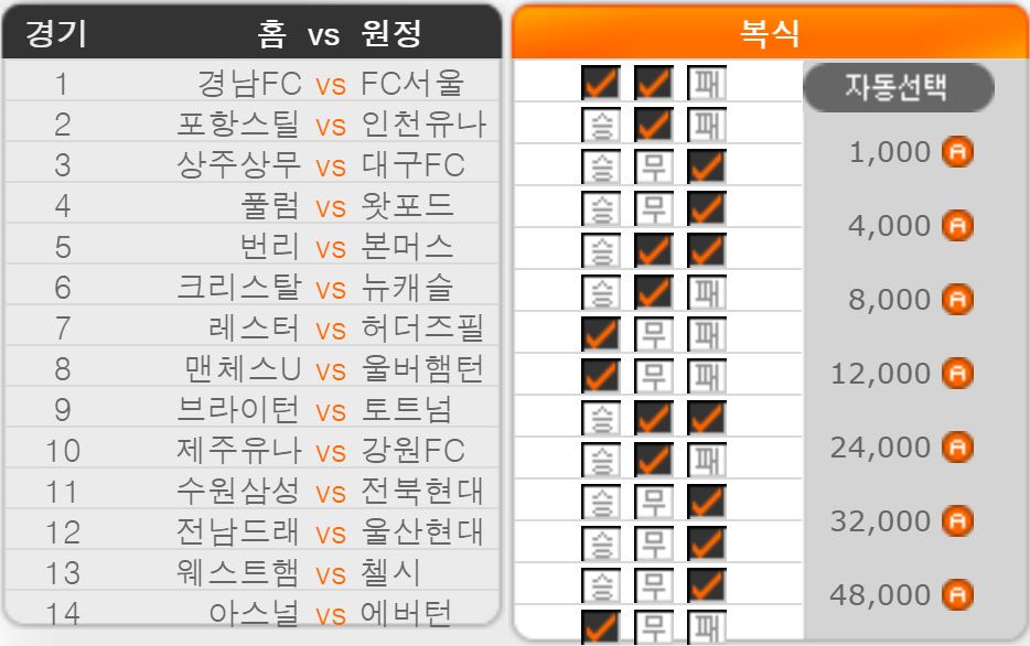 Tip. 이번 회차에 있는 무승부 후보군 중에서 1~2순위로 고려될 만한 픽