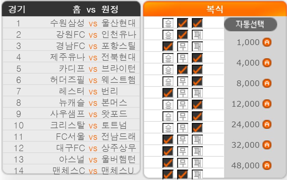 스포츠토토 승무패 32회차 14경기