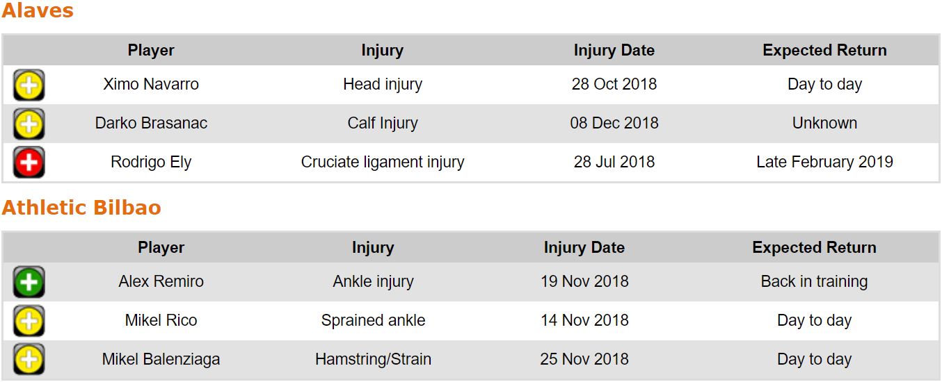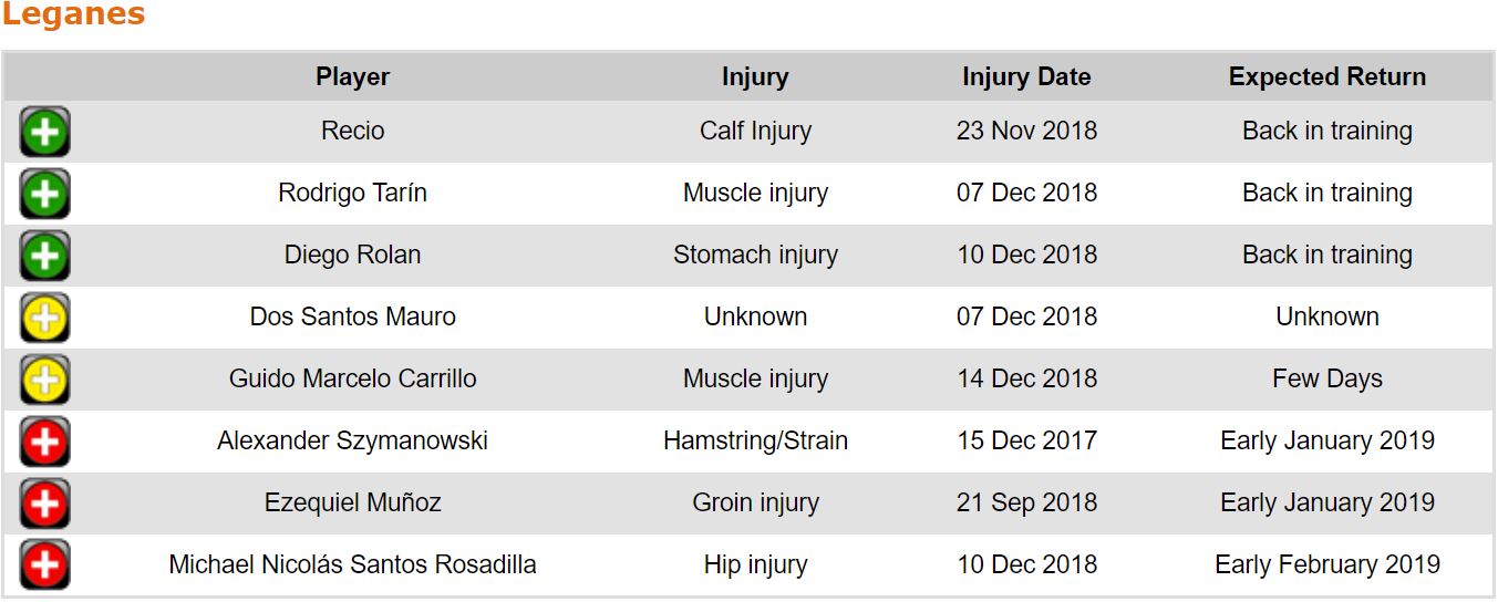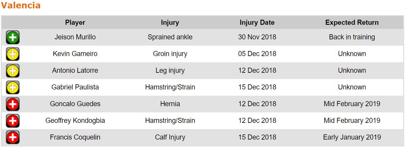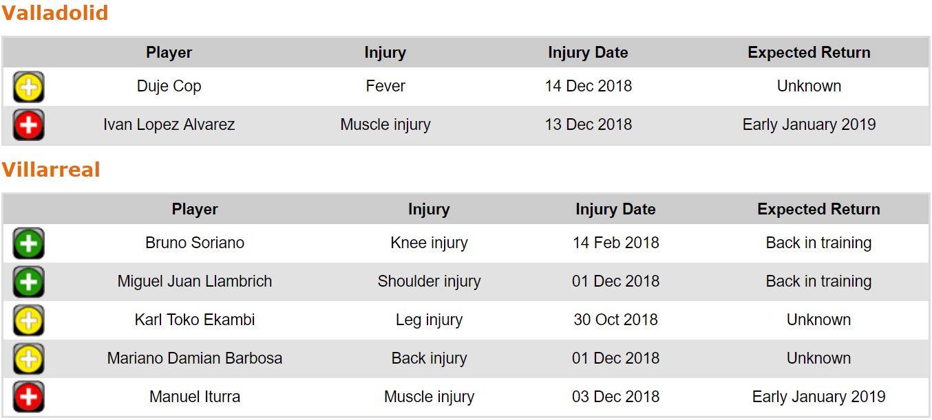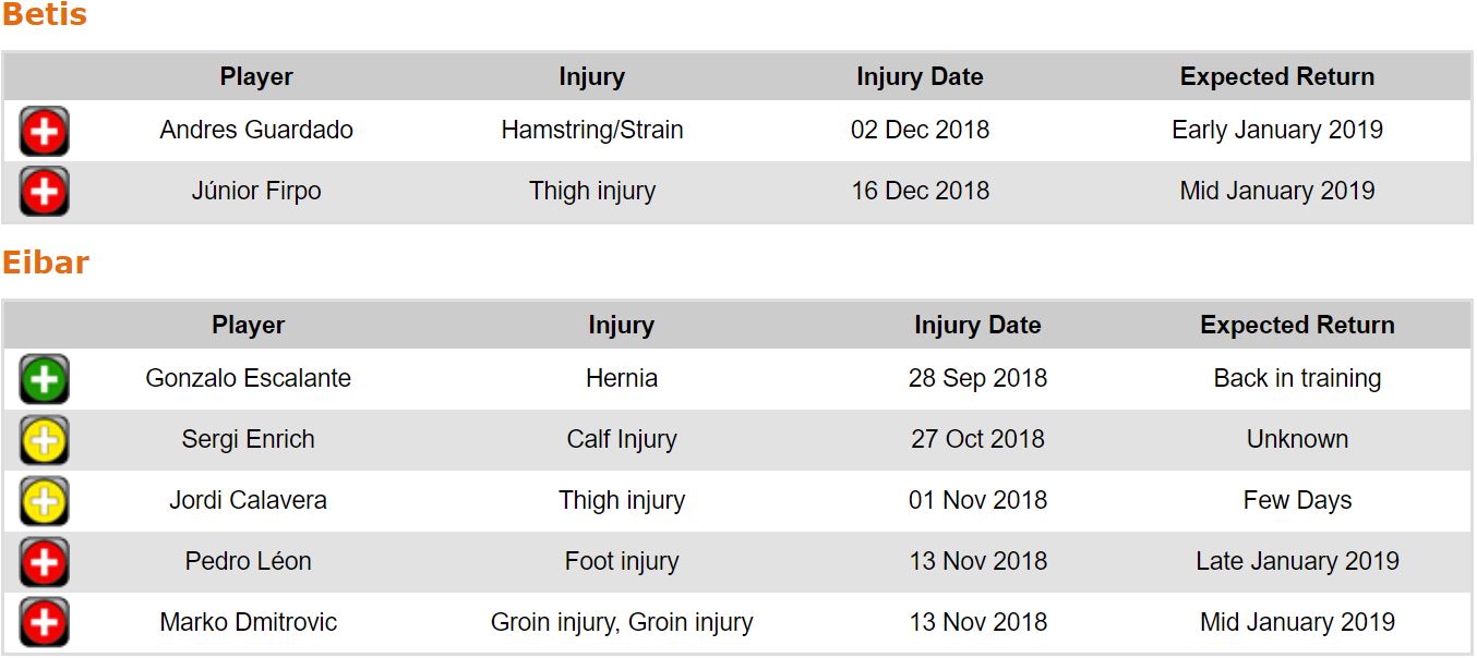 프리메라리가 17라운드 각 팀 부상자 및 결장 예정 선수