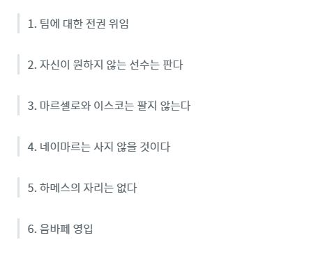 다름 아닌 아래 6가지 조건 때문인데요. 사실 레알은 페레스 회장의 입김이 전통적으로 강한 구단이었었죠. 어디 하나씩 살펴볼까요.