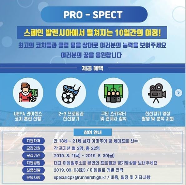 러너스하이와 다양한 국가에 축구 에이전시를 보유하고 있는 "Fieldoo"라는 회사가 축구선수들의 해외진출을 돕기 위해 스페인 발렌시아에서 10일간 트라이얼을 진행합니다.