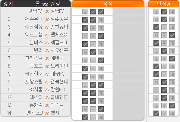 중복 체크 여부: 무승부 주력, 원정 팀 승 부주력. 1~5순위 안에 포함 될 만한 경기