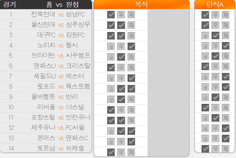 스포츠토토 승무패 30회차 14경기 분석