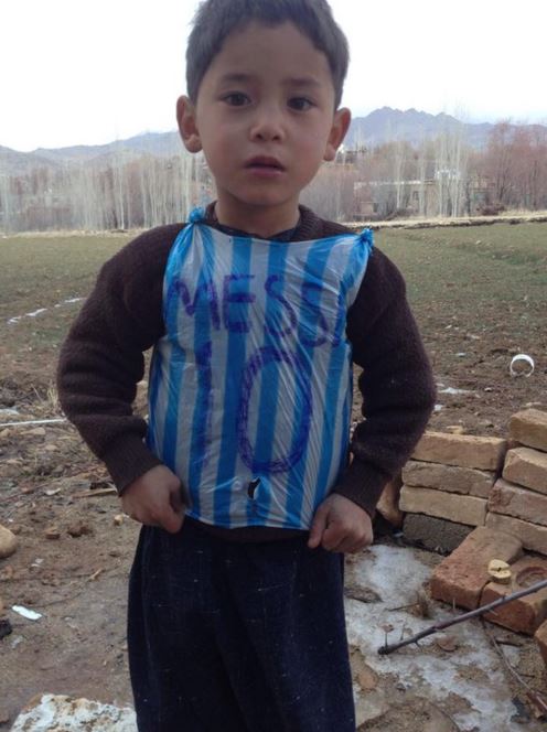 최근 비닐 봉투로 리오넬 메시의 아르헨티나 유니폼을 만들어 입었던 소년의 정체가 드러났다. 앞서 이라크 방송사 쿠르디스탄24는 이 소년은 아라크에 거주하는 호민이며 해당 사진은 2년 전 사진이라고 보도했는데 진위 여부를 놓고 온라인상에서 말들이 많았다. 이번에는 보다 명확한 듯보인다. 26일 영국 BBC에 따르면 이 소년은 아프카니스탄 한 시골 마음에 사는 무타자 아흐마디. 나이는 5살이다.
