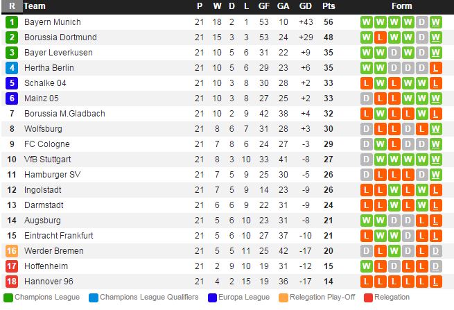 잉골슈타드는 지난 라운드 볼프스부르크 전에서 0-2 패배를 당하며 리그 12위까지 순위가 내려왔다. 후반기 들어서 확실히 선수들의 체력적인 문제가 드러나는 모습이고 공격력이 너무 부진하다. 브레멘 역시 지난 라운드 호펜하임 전에서 1-1 무승부를 거두고 리그 16위 강등권에 빠져있다. 베스터가르트와 가르시아 등 수비진이 전반기에 비해서는 나은 활약을 보여주고 있지만 여전히 기복이 심한 것이 단점이다.