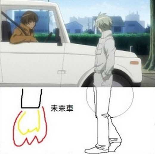 이 장면을 문제 삼은 최초의 주장은 자동차 바퀴의 크기를 고려해봐도 등장인물이 2등신도 안된다는 대목이었습니다.