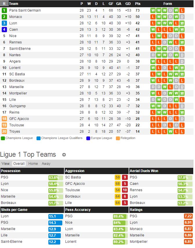 니스는 지난 라운드 바스티아와의 홈경기에서 0-2 패배를 당하면서 최근 리그 6경기에서 1승 2무 3패로 부진한 성적을 거두고 있다. 최근 공격력이 눈에 띄게 약해지면서 전체적인 경기력에 대한 문제점을 드러내고 있다. 트로와는 지난 라운드 로리앙 전에서 0-1 패배를 당하며 여전히 리그 최하위에 머물러있다. 이미 17위와의 승점차는 20점 차 정도 나기 때문에 강등은 기정 사실화 되어있는 모습이다.
