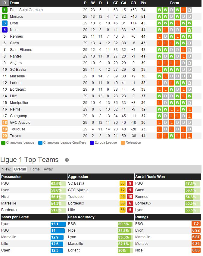 모나코는 지난 라운드 캉 전에서 아쉬운 2-2 무승부를 거두며 리그 2위를 유지하고 있다. 최근 리그 6경기에서 3승 3무로 무패행진 중이며 홈 경기에서는 4연승으로 위력적인 모습을 보여주고 있다. 랭스는 지난 라운드 릴 전에서 0-2 패배를 당하며 리그 16위에 머물러있다. 랭스는 올시즌 유독 원정 경기에서 취약한 모습을 보여주고 있고 실점률이 높아지는 등 경기내용 및 성적이 좋지 않다