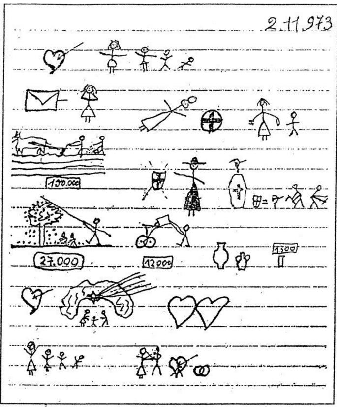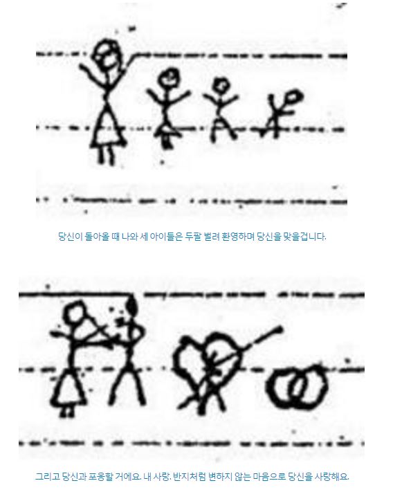 온라인 커뮤니티에 올라온 '세상에서 가장 아름다운 편지'는 70년대 이탈리아에서 '문맹'인 아내가 남편에게 보낸 그림편지이다. 당시 이탈리아는 인구의 5%정도가 문맹이었기 때문에 편지를 '그리는 일'이 종종 있었다고 한다.