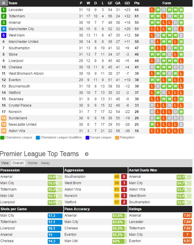 [EPL 2일 예상] 빌라 첼시, 본머스 맨시티, 스토크 스완지, 아스널 왓포드, 리버풀 토트넘 '레스터 우승? 진짜?'