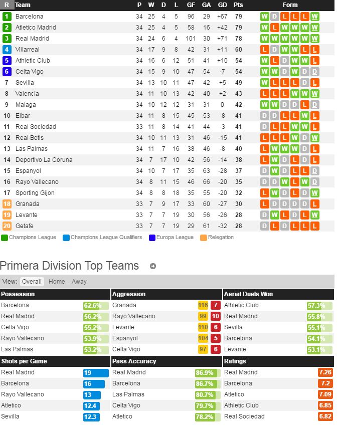 라요는 지난 라운드 말라가 전에서 1-1 무승부를 기록하면서 최근 리그 6경기에서 2승 3무 1패를 기록 중이다. 라요의 최근 경기력은 후반기 들어서 크게 개선 된 느낌이지만 지난 12월에 레알에게 10실점 했던 아픈 기억이 있다. 레알마드리드는 지난 라운드 비야레알 전에서 3-0 완벽한 승리를 거두었다. 모드리치가 뛰어난 활약을 펼쳤고 벤제마는 시즌 24호골을 터트리며 팀의 승리를 이끌었지만 베일의 출전 여부는 여전히 불투명 하다.