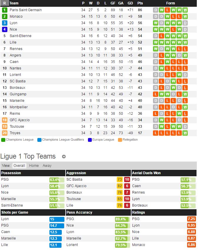 니스는 지난 라운드 리옹 전에서 1-1 무승부를 거두며 리그 4위를 유지하고 있다. 여전히 챔스 진출 권을 포기 할 수 없는 상황에서 벤아르파-제르맹 같은 선수들의 득점이 필요한 시점이다. 랭스는 지난 라운드 최하위 트로와에게 1-2 충격적인 패배를 당하며 강등 권과의 승점차는 단 2점에 불과하게 되었다. 랭스의 최근 경기력도 매우 좋지 못하고 니스가 최근 홈 경기에서 연승 행진을 거듭하고 있기에 쉽지 않은 경기가 될 것으로 보인다.