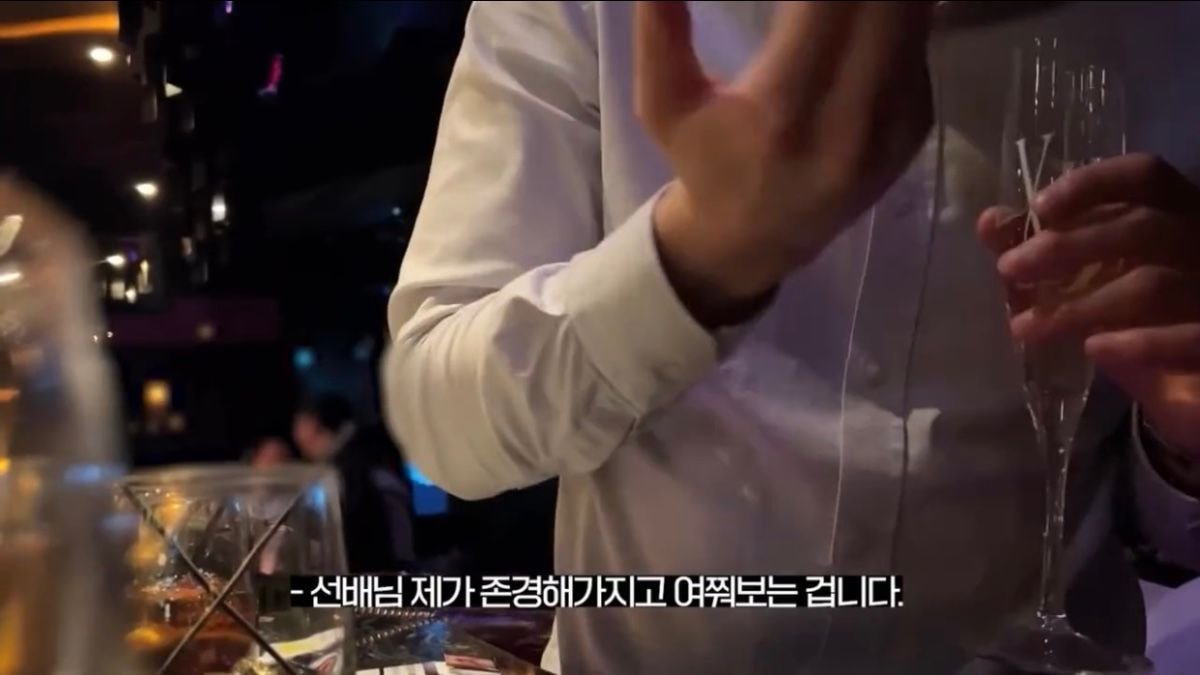 이 남성은 "너무 죄송한데 혹시 어떻게 이렇게 잘 놀고 계시는지 궁금해서 여쭤본다"며 "왜냐하면 저희도 테이블이 있다. 저희도 잘 놀고 있는데 우리 선배님은 여기서 이렇게 딱 중심 잡고 (계신다). 존경해서 여쭤보는 거다"라고 했다.