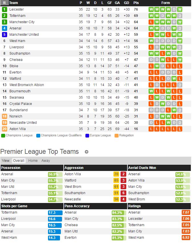 아스널은 지난 라운드 선덜랜드 전에서 0-0 무승부를 기록하면서 이번 시즌 우승도 좌절 되었다. 대부분의 부상 선수들의 회복 되면서 스쿼드 운용에 한결 여유가 생긴 모습이지만 최전방 공격수에 대한 고민거리는 여전히 남아있는 모습이다. 노르위치는 지난 라운드 선덜랜드 전에서 0-3 패배를 당하며 리그 18위 강등권으로 추락한 모습이다. 그러나 2주 가량 경기가 없었기에 선수들의 체력적인 보충이 된 상황이고 음보카니-훌라한등 주전 공격진의 활약에 기대를 걸어볼만 하다.