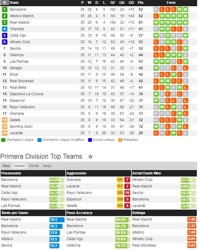 그라나다는 지난 라운드 셀타비고 전에서 1-2 패배를 당하고 리그 17위에 머물러있다. 공격수 알아라비는 14골을 넣으면 팀 공격을 이끌고 있는중이고 최근 홈 5경기에서 무패행진 중이다. 라스팔마스는 지난 라운드 에스파뇰 전에서 4-0 대승을 거두고 리그 9위까지 순위를 끌어올렸다. 라스팔마스는 비에라가 8골 9어시로 팀의 공격을 이끌고 있으며 호세-엘자하르 등이 공격에서 힘을 보태주고 있다.