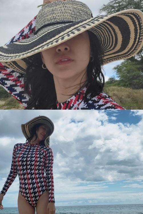 배우 전혜빈이 D라인이 드러난 수영복 자태를 공개했다.