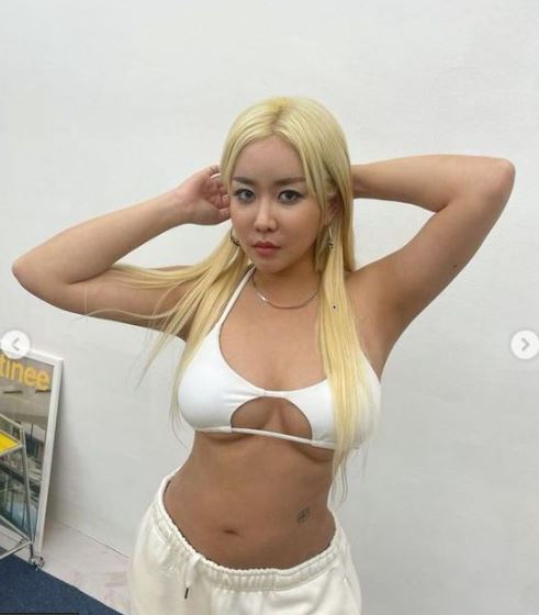 래퍼 퀸 와사비가 언더붑 패션을 선보이며 과감한 자태를 뽐냈다.