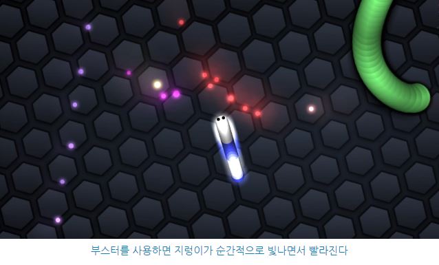 부스터 공수 양면에서 매우 유용한 스킬이다. 마우스를 왼쪽 버튼을 클릭하고 있으면(모바일의 경우 두 번 탭) 지렁이가 빛나면서 빠른 속도로 움직이게 되는데 위기의 순간에서 탈출하거나 적의 머리에 몸을 가져다 댈때 사용하면 좋다.