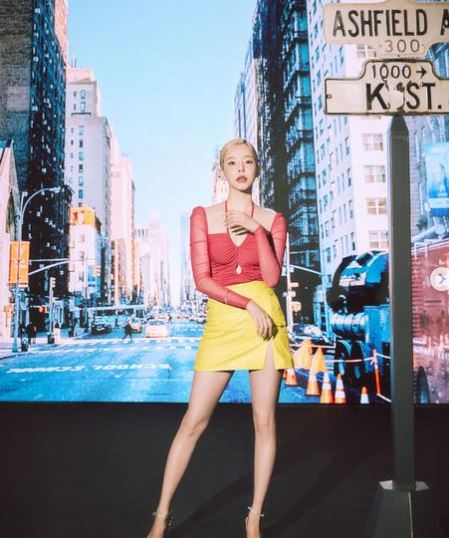 사진에서 써니는 강렬한 레드 컬러의 홀터넥이 돋보이는 상의를 완벽하게 소화하고 있는 모습이다. 그는 네크라인이 깊게 파인 상의로 섹시미를 더했다. 특히 노란색 가죽 치마도 완벽하게 소화하며 늘씬한 각선미도 자랑했다.
