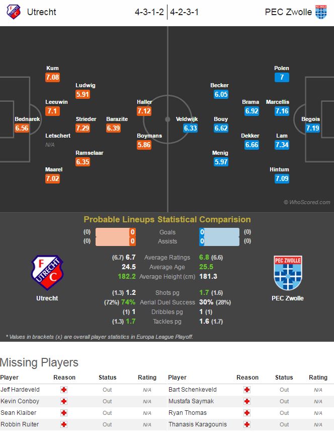 -후스코어드 예상 : 위트레흐트 1-0 츠볼레