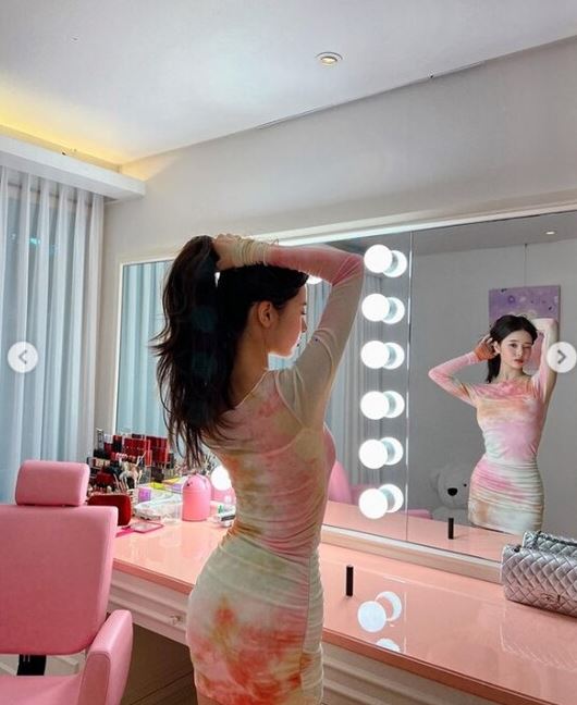 여기에는 화장대에 걸쳐 앉아 포즈를 취하고 있는 프리지아의 모습이 담겼다. 몸매가 드러나는 밀착 원피스로 글래머 몸매를 뽐내고 있어 눈길을 끈다.