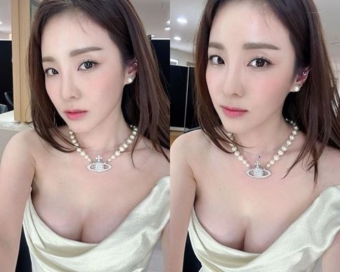 산다라박은 최근 오픈 숄더 드레스를 입고 비현실적인 몸매를 뽐냈다. 역대급 파격 노출로 반전의 마네킹 몸매를 자랑한 것.