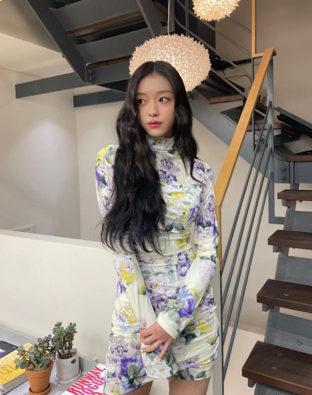 여기서 유아는 셔링 디테일과 커다란 꽃무늬로 페미닌한 무드를 자아내는 미니 원피스를 입고 새침한 표정을 짓고 있다. 그녀는 자연스러운 웨이브 머리스타일로 여신 미모를 뽐내 시선을 끌었다.