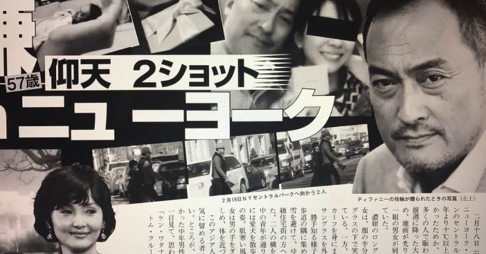 앞서 그의 불륜 소식은 지난 2017년 3월 드러났다. 당시 그의 불륜 소식을 보도한 주간문춘은 "와타나베 켄이 고급 전통 클럽에서 호스티스로 활동했던 30대 주얼리 디자이너 A씨와 3년 넘게 불륜 관계를 지속해오고 있다"고 보도했다.