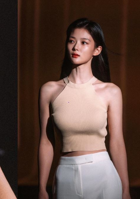 여기서 김유정은 몸에 밀착되는 베이지색 홀터넥 니트 크롭톱에 화이트 팬츠를 입고 세련되면서도 성숙한 매력을 과시했다. 청순한 미모와는 반전되는 볼륨감 넘치는 몸매가 돋보였다.