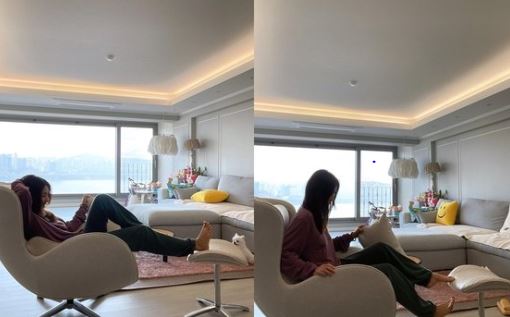 사진에 담긴 거실에는 밝은 컬러의 소파와 아기자기한 인테리어 소품들이 눈에 띈다. 또 거대한 통창으로 보이는 너른 한강뷰가 누리꾼들의 부러움을 자아냈다.