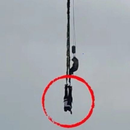 지난 11일 충칭에 있는 선밍놀이공원 번지점프장에서 젊은 커플이 번지점프를 타고 내려갔으나 다시 올라오지 않고 공중에 그대로 매달려 있었다.