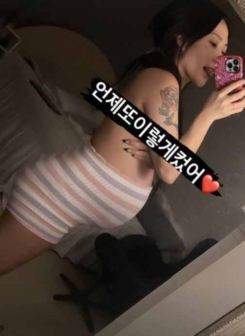 허니제이는 거울에 비친 자신의 모습을 카메라에 담고 있는 모습. 특히 상의를 완전히 탈의한 채 손으로만 가리고 인증샷을 찍고 있어 눈길을 끈다.