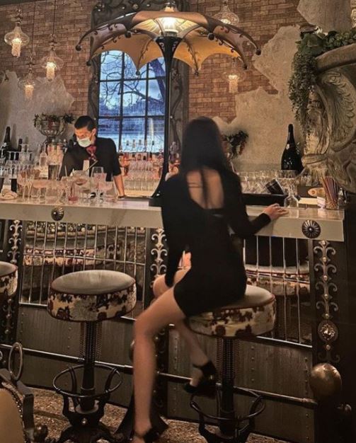사진 속 지연은 분위기 좋은 한 바에 앉아 여유를 즐기고 있는 모습이다. 특히 각선미를 드러낸 짧은 검정 드레스가 눈길을 끈다. 또한 과감하게 등을 드러낸 모습도 인상적이다.