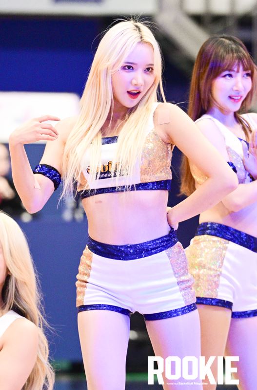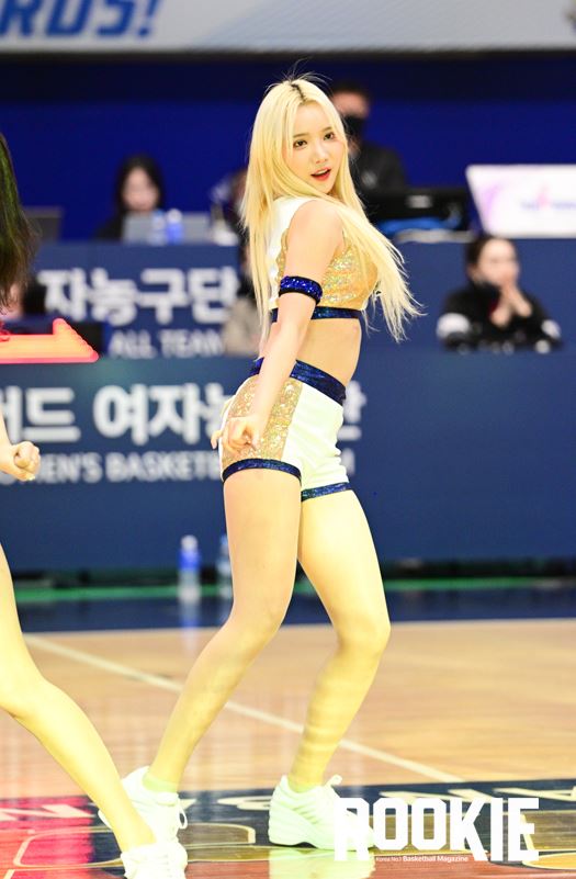 인천 도원체육관에서 ‘신한은행 SOL 2022~2023 여자프로농구’ 인천 신한은행과 부천 하나원큐의 경기가 열렸다. 이진 치어리더가 신한은행을 응원하고 있다.