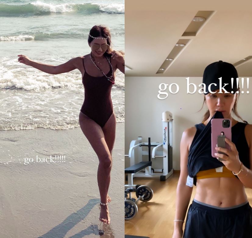 엄정화는 최근 인스타그램에 "go back"이라는 글과 함께 두 장의 사진을 공개했다.