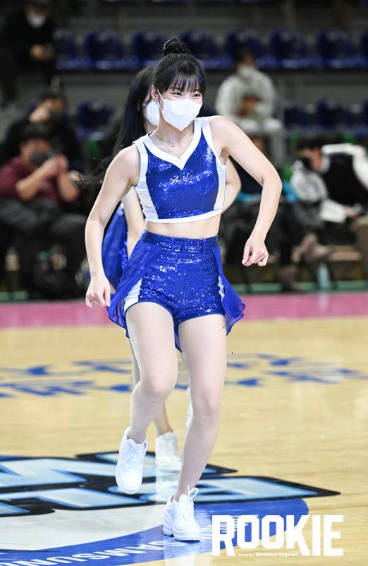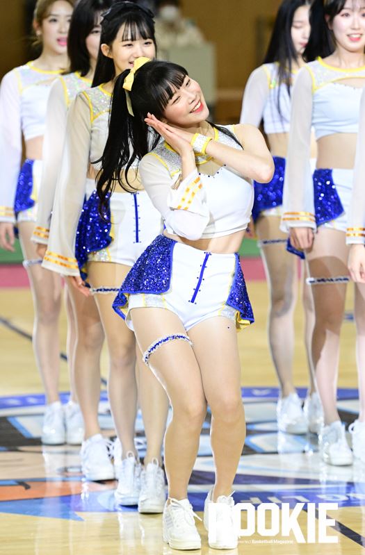 용인실내체육관에서 ‘신한은행 SOL 2022~2023 여자프로농구’ 용인 삼성생명과 청주 KB스타즈의 경기가 열렸다. 김하나 치어리더가 삼성생명을 응원하고 있다.