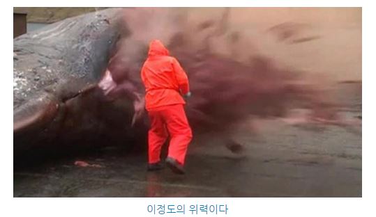 다음 영상은 고래 시체가 폭발하는 모습이다. 바다의 폭탄이라고 불리는 고래 시체가 폭발할 때의 위력이 얼마나 강렬한지 영상으로 확인해보자.