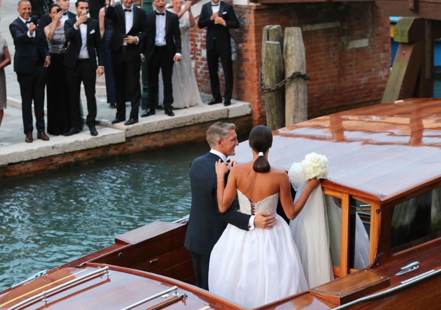 독일 축구선수 바스티안 슈바인슈타이거(맨유)와 세르비아의 테니스 스타 아나 이바노비치가 지난 13일 화촉을 밝혔습니다. 결혼식은 이탈리아 베네치아 시청이었고요. 결혼식 직후 배를 타고 떠나는 모습이 이채롭네요. 슈바인슈타이거는 독일 대표로 이번 유로2016에서도 활약했습니다. 준결승 프랑스와 경기서 뜻하지 않게 부진했지만요. 이바노비치는 대표적인 '얼짱' 테니스 스타로 유명합니다. 185cm의 큰 키로 슈바인슈타이거 보다 더 큰 아우라를 뽐냈습니다.
