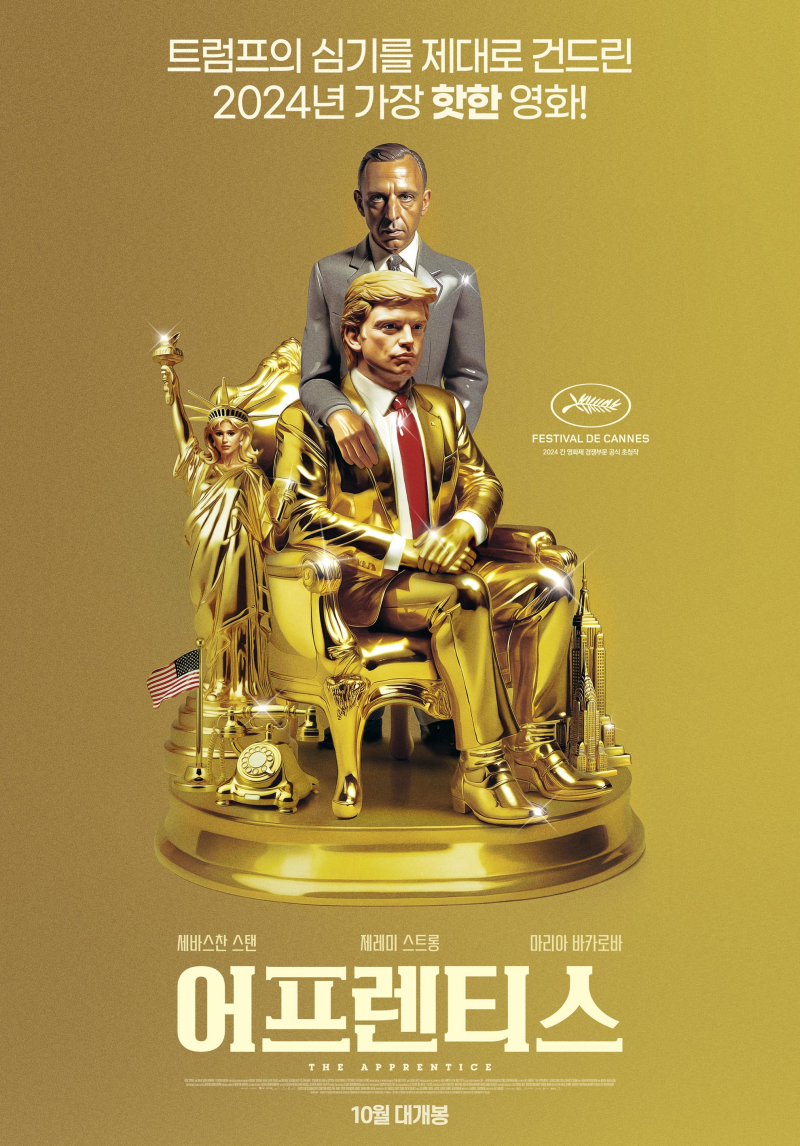'어프렌티스'는 뉴욕 부동산 업자의 아들로 시작해 세계 최고의 부동산 재벌이자 미국 대통령이 된 트럼프와 그의 변호사였던 로이 콘의 이야기를 담고 있다. 이 영화는 지난 제77회 칸 영화제에서 첫 공개되며 화제를 모았고, 이후 2024년 대선 주자인 트럼프 측의 법적 협박을 받기도 했다.