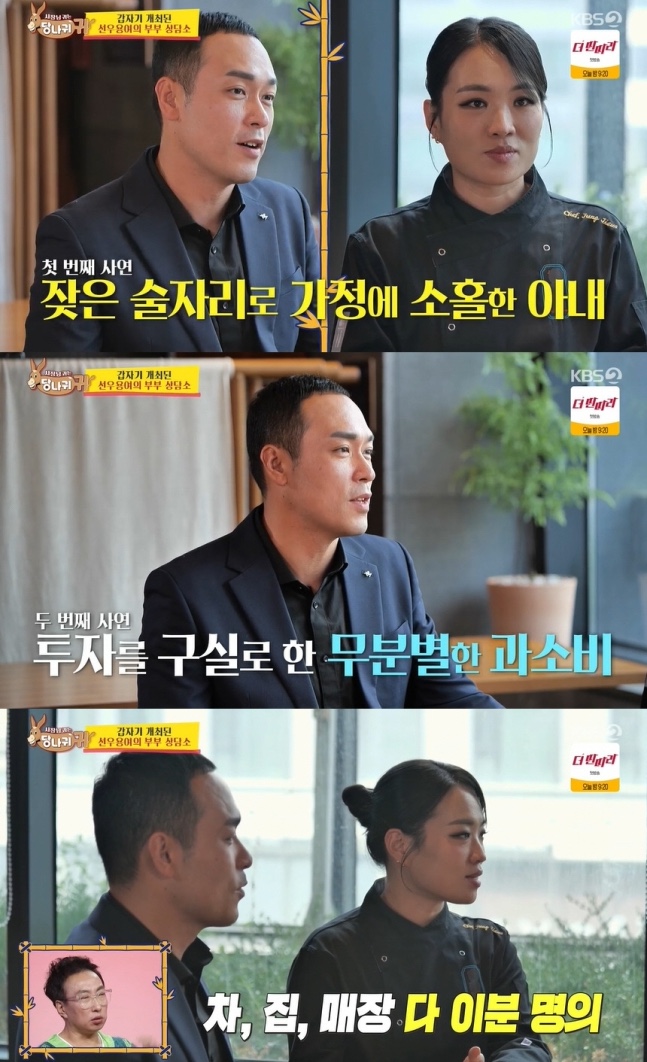 3일 방송된 KBS 2TV 예능 프로그램 *사장님 귀는 당나귀 귀*(이하 *사당귀*)에서는 셰프 정지선이 선우용여와 김지선을 초대해 남편과의 일상을 털어놓는 장면이 그려졌다.
