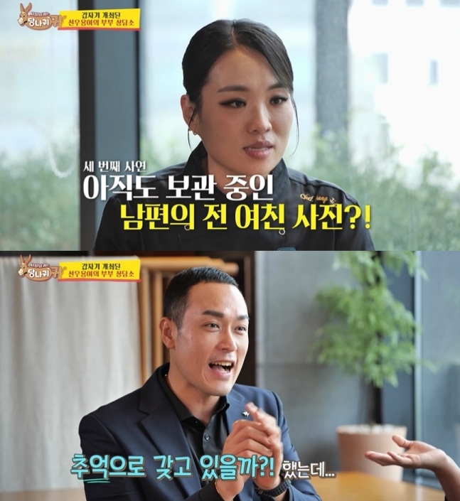 정지선은 결국 남편의 ‘만행’에 대한 폭로로 맞섰다. 그는 “남편이 결혼 후에도 전 여자친구들의 사진을 그대로 가지고 있다”며 “11년이 지나도 버리지 않는다”고 토로했다. 이에 대해 남편은 “추억으로 간직하려 했으나 싫어하는 걸 알았으니 버리겠다”고 해명했다.