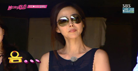 이 모습에 강수지는 어떻게 반응했을까. 선글라스를 끼고 나온 강수지는 입은 웃고있었지만 손으로는 연신 선글라스를 매만졌다. 강수지는 김국진과 강문영을 번갈아 쳐다봤고 시청자들은 그 모습을 통해 선글라스에 가려진 강수지의 눈빛을 추측할 수 있었다. 또한 강수지는 "(김국진에) 관심 가져도 된다"라고 태연한 척 말했지만 표정은 매우 어색했다.