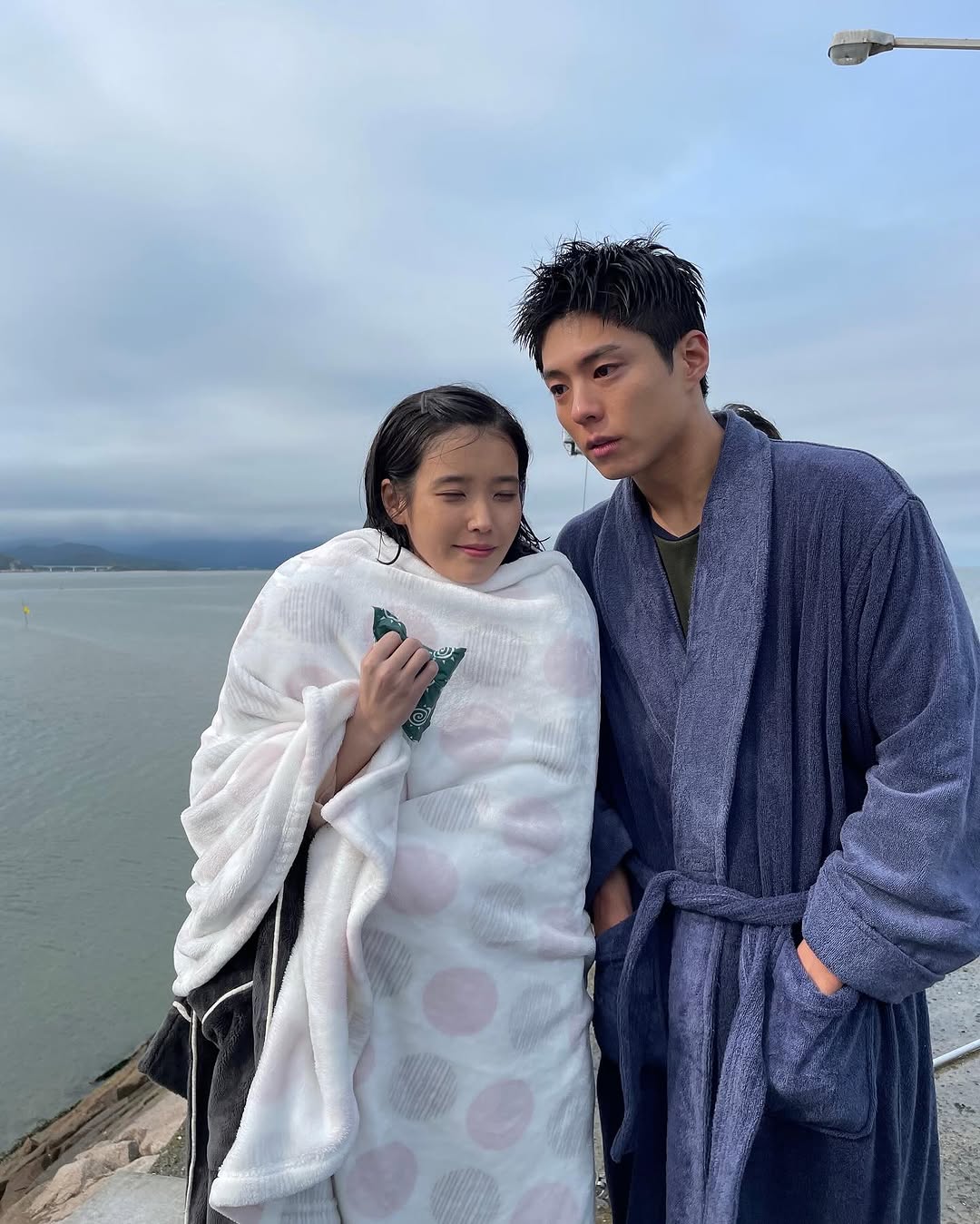 아이유는 또한 물에 빠진 박보검을 끌어올리는 장면의 비하인드 영상도 공개했다. 촬영 후 쫄딱 젖은 두 사람이 담요와 가운을 두른 채 추위를 달래면서도 나란히 붙어있는 모습이 눈길을 끌었다.