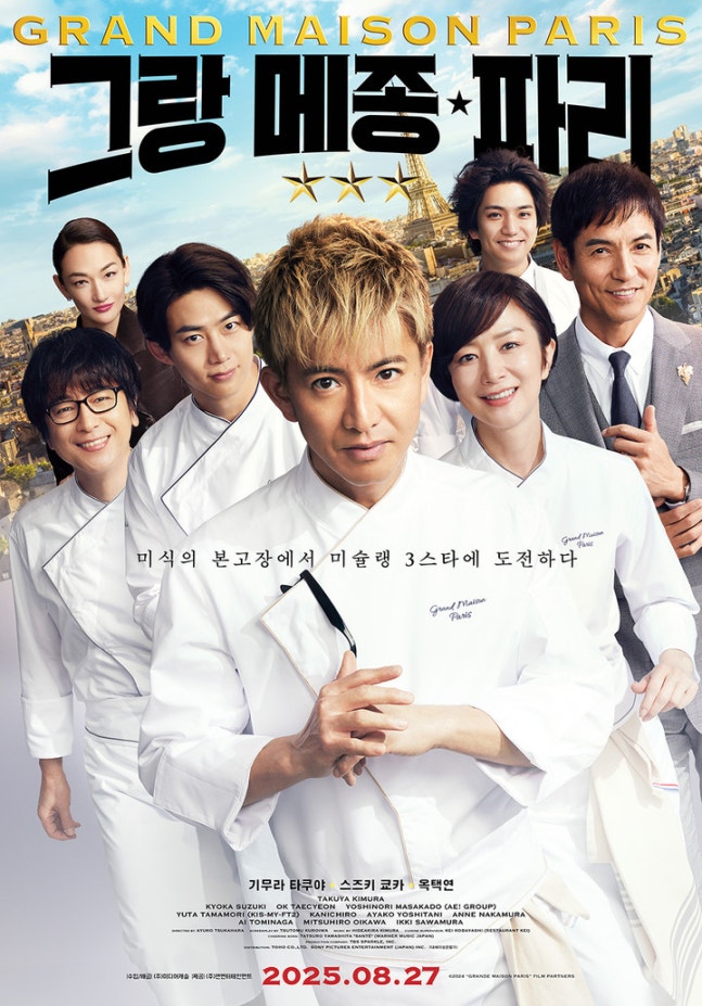 영화 ‘그랑 메종 파리’가 오는 8월 27일 국내 개봉을 확정하고 메인 포스터를 공개했다. 일본 드라마 ‘그랑 메종 도쿄’의 세계관을 이어가는 이번 작품은 프랑스 파리를 배경으로 미슐랭 3스타라는 궁극의 목표를 향해 질주하는 셰프들의 이야기를 담는다.
